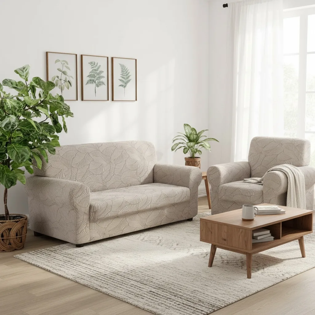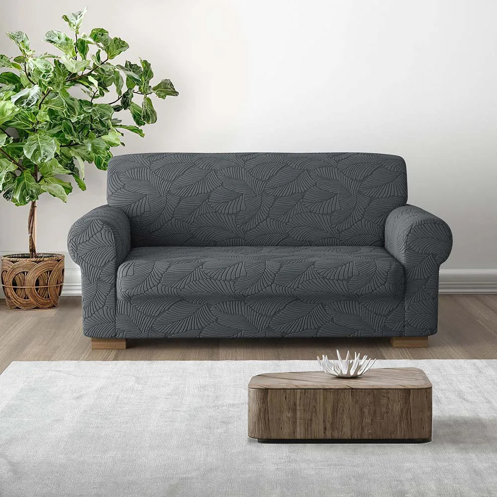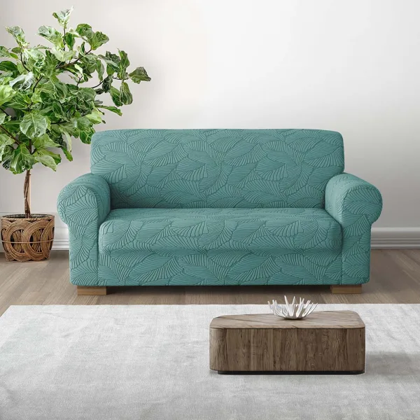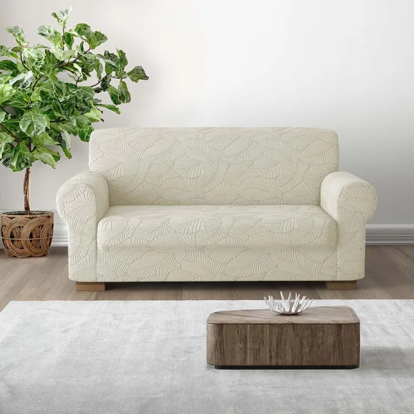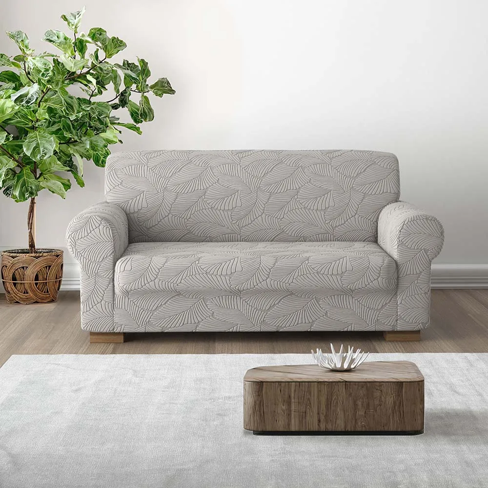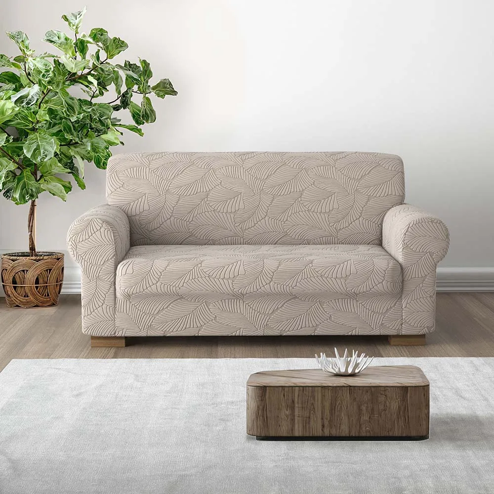 Il copridivanoIRGE Miù è realizzato in tessuto elasticizzato in un fantastico decoro con foglie eleganti e stilizzate