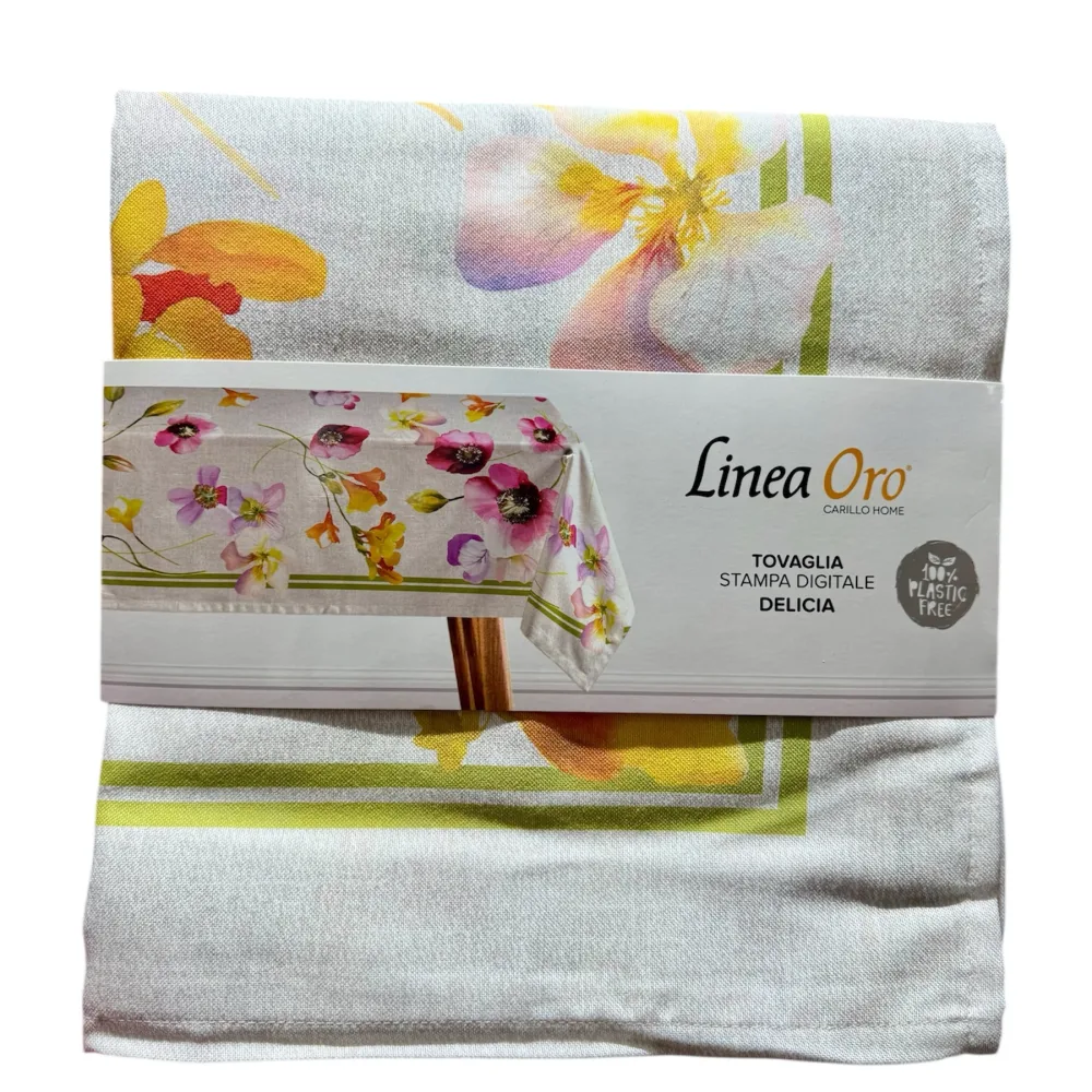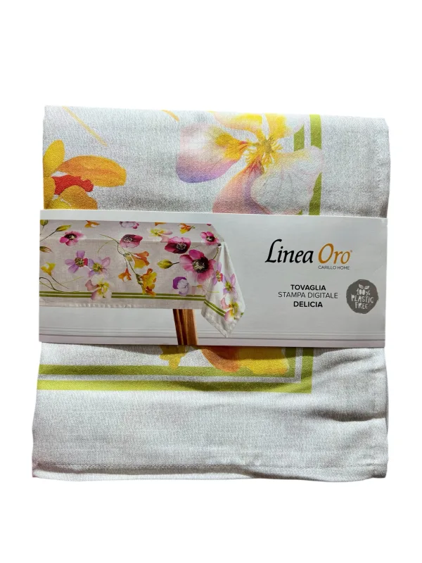 Le tovaglie da tavola stampate Linea Oro portano sulla tavola un tocco di stile fresco e contemporaneo. Fantasie originali che richiamano atmosfere naturali e donano personalità alla mise en place. Un complemento tessile perfetto per arricchire la tavola con eleganza e un design decorativo moderno.