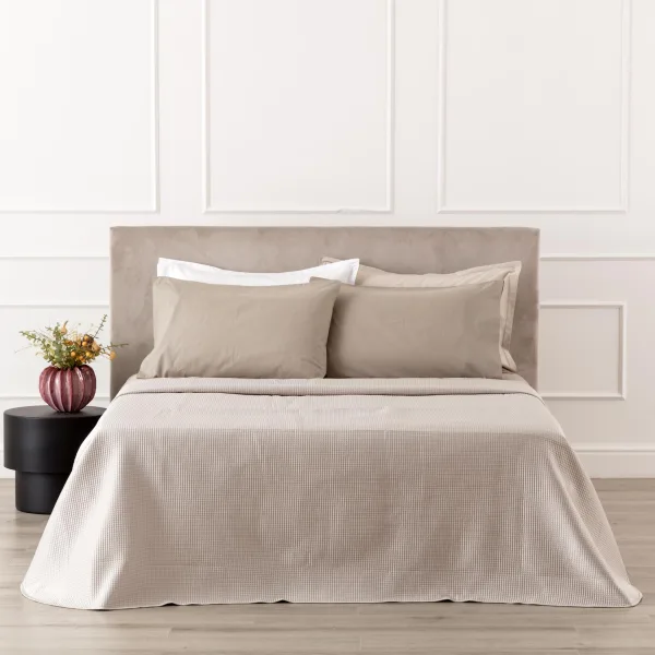 Le varianti colore Naturale, Champagne, Tortora e Carta da Zucchero permettono di interpretare lo spazio con sfumature morbide e sofisticate. Naturale e Champagne illuminano l’ambiente con discrezione, Tortora aggiunge profondità neutra e contemporanea, mentre Carta da Zucchero introduce una nota fresca ma elegante, perfetta per camere moderne o dal gusto marino. Il Quilt Capri è una scelta pratica e visivamente equilibrata, pensata per chi ricerca leggerezza, ordine e coerenza cromatica nella zona notte.